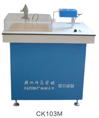 用於(yú)演示水波幹涉。該裝置主要由水紋發生器、發光二極管陣列、水槽等組成。在水槽中注入适量水,按下水紋發生器開關,下端頭在水槽中制造出兩個頻率與周期完全相同的水波,兩列水波向外傳播,形成雙縫幹涉條紋。在條紋水波幅度較大區間,波峰時接通二極管電路,波谷時斷開二極管電路,這樣就能看到二極管陣列周期性地發光與熄滅。在水波幅度較小區域,二極管一直處(chù)於(yú)斷開狀态。